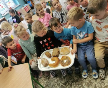 W przededniu Światowego Dnia Chleba przedszkolaki z Grodziska poznawały zawód piekarza. Odwiedziła nas bowiem pani Kornelia, która pracuje w piekarni w Kadłubie.