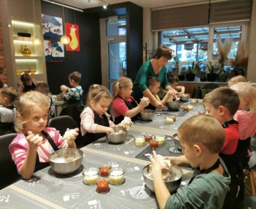 Na początku dzieci zostały powitane przez pizzaiolo, czyli mistrza pizzy, który opowiedział im historię powstania pizzy, skąd pochodzi, z jakich składników jest przygotowywana, jak się ją piecze. Pan Andrzej opowiedział przedszkolakom legendę o powstaniu pizzy Margherita, którą to dzieci miały wykonać więc zakasały rękawy i zabrały się do pracy. Przygotowanie ciasta składało się z kilku etapów, ale nasze przedszkolaki doskonale sobie radziły. Z entuzjazmem wyrabiały ciasto, formowały pizzę , smarowały sosem pomidorowym i posypywały serem. Po upieczeniu pizzy czekała je prawdziwa uczta, każdy zajadał się pizzą przygotowaną przez siebie. Warsztaty kulinarne w pizzerii sprawiły dzieciom wiele radości, a także były doskonałym sposobem na ciekawe zajęcia rozwijające kreatywność, samodzielność i ciekawość świata kulinarnego.